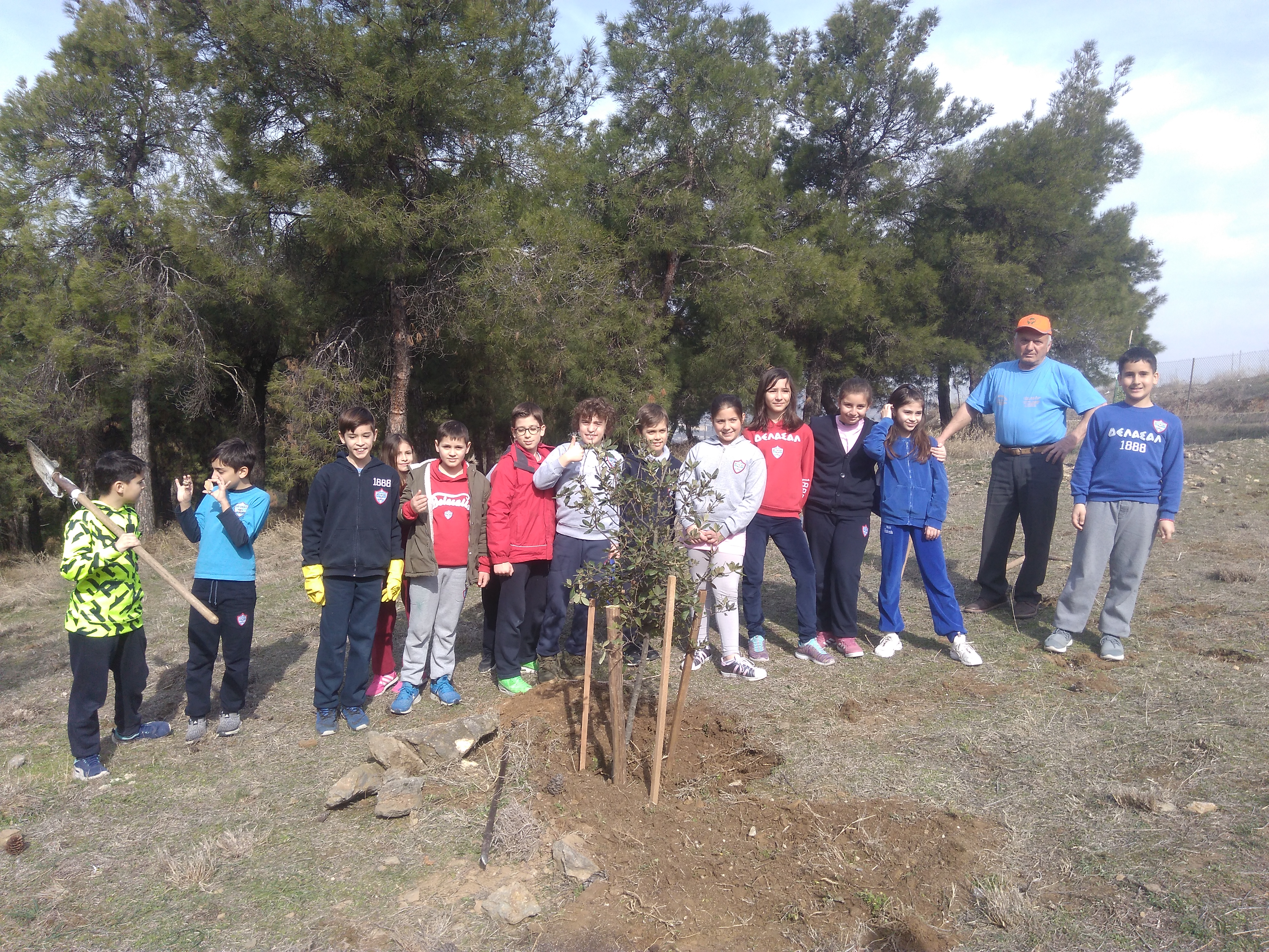 Οι μικροί εθελοντές της Ε’ τάξης , σε συνεργασία με τον εντεταλμένο Δημοτικό Σύμβουλο Περιβάλλοντος, Πρασίνου, Εθελοντισμού και Πολιτικής Προστασίας του Δήμου Παύλου Μελά, Σάκη Λαζαρίδη, καθάρισαν τμήμα του δασυλλίου Μετεώρων-Πολίχνης. Στην συνέχεια, με την βοήθεια εθελοντών του συλλόγου  «Φίλοι του Δάσους», ο οποίος δραστηριοποιείται στον συγκεκριμένο χώρο, φύτεψαν συμβολικά ένα πλατύφυλλο δένδρο. Τέλος, παρέδωσαν για ανακύκλωση, με πολλή χαρά και ικανοποίηση, 130 σακούλες με πλαστικά καπάκια που είχαν συγκεντρωθεί στο πλαίσιο του εορτασμού των 130 χρόνων του Κολεγίου ΔΕΛΑΣΑΛ.