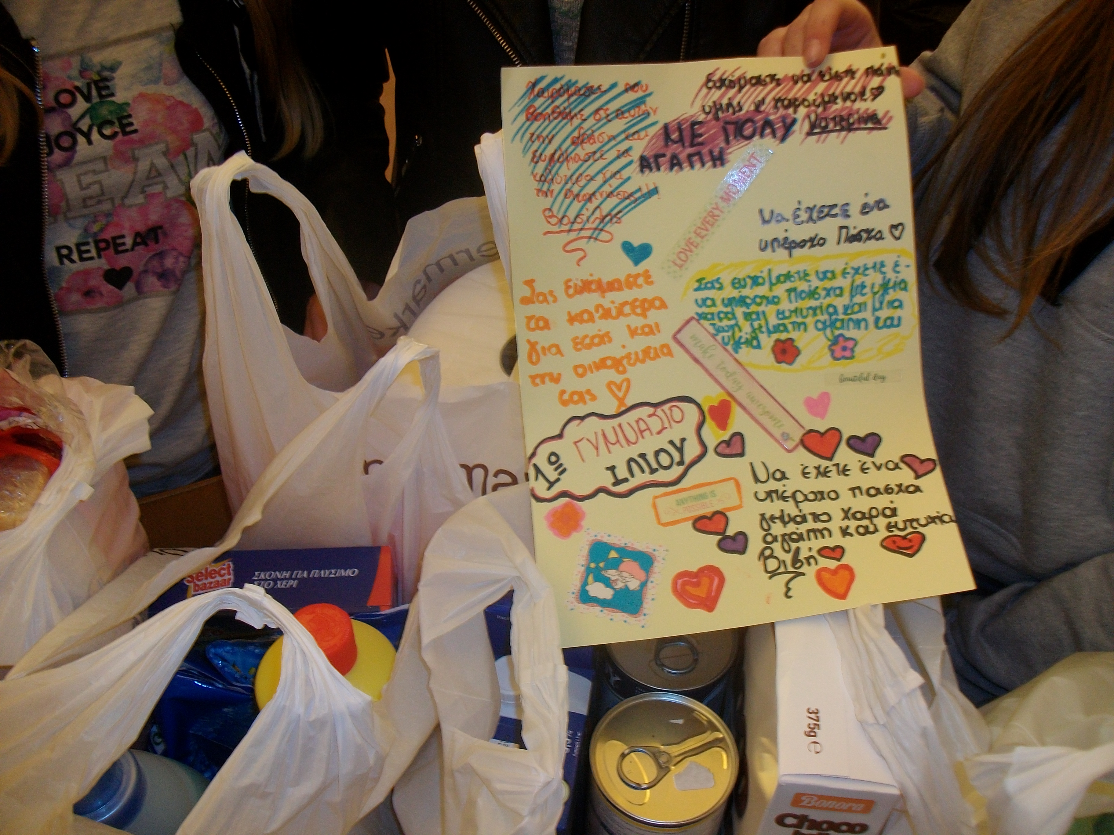 Το Α1 συγκέντρωσε τρόφιμα και είδη πρώτης ανάγκης για την στήριξη μιας οικογένειας του Ιλίου, που αντιμετωπίζει σοβαρά οικονομικά προβλήματα. Την Πέμπτη 11 Απριλίου αντιπροσωπεία των μαθητών του τμήματος μετέφερε πεζή ως το σπίτι της οικογένειας ένα μικρό μέρος των ειδών που συγκεντρώθηκαν και γνώρισε την οικογένεια και τα 6 μικρά παιδάκια από κοντά.