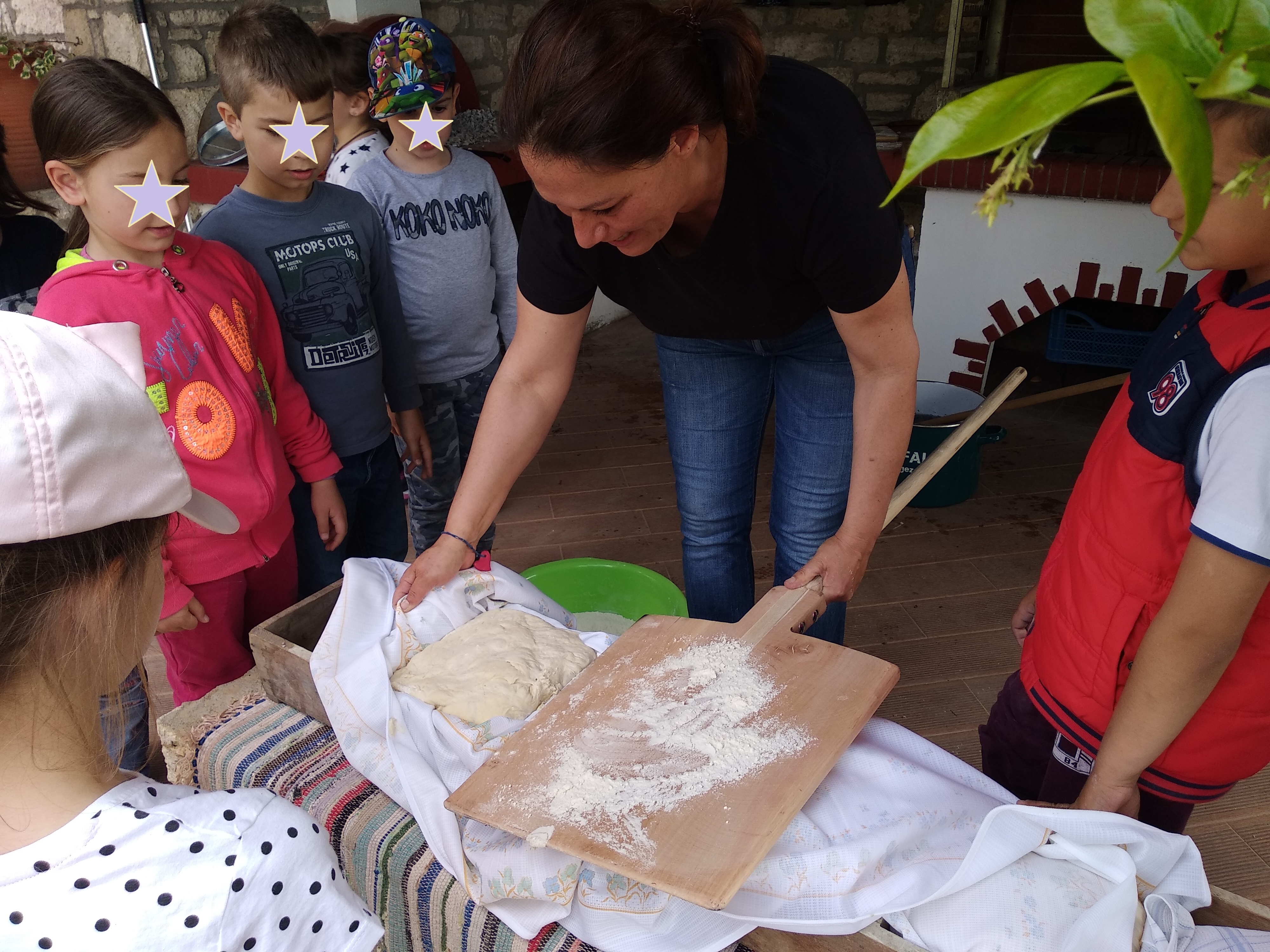 κεράσματα και μας ξεναγεί στον παραδοσιακό ξυλόφουρνο στην αυλή τους. Ψήνουμε