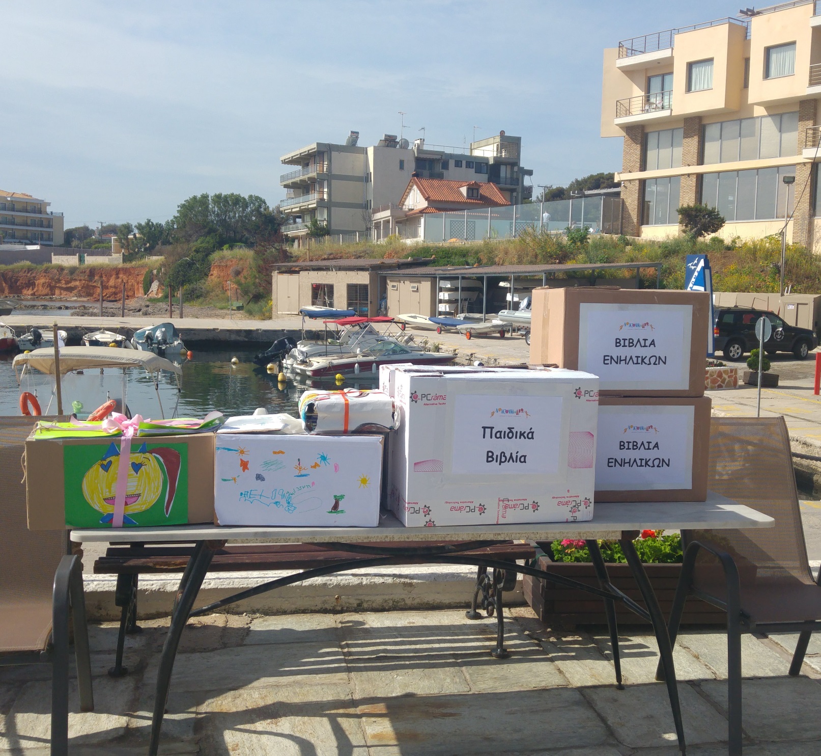 Εκεί, δίπλα στην καταγάλανη θάλασσα αφήσαμε  τα βιβλία που συγκεντρώθηκαν στην εβδομάδα σχολικού εθελοντισμού, με τη συνεργασία σχολείων, παιδιών, γονέων και φορέων, όλων όσοι έγιναν μαζί μας βιβλιοεθελοντές!