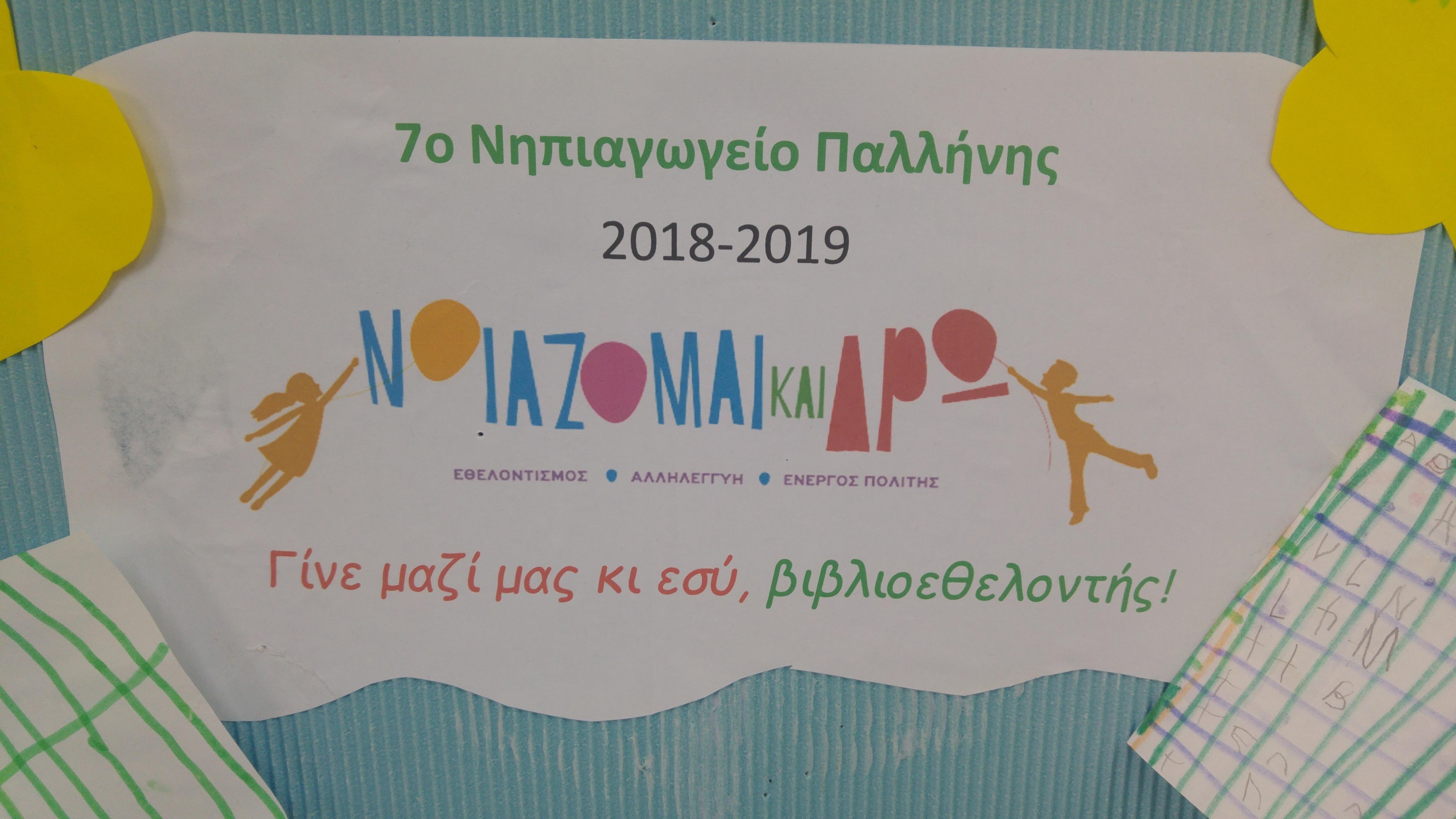 Την Τρίτη, 21 Μαΐου 2019 οι βιβλιοεθελοντές του 7ου Νηπιαγωγείου Παλλήνης, παρουσία της συντονίστριας του προγράμματος κ.Χρύσας Κουράκη,Υπεύθυνης Πολιτιστικών Θεμάτων Π.Ε. Ανατ.Αττικής και μελών του Συλλόγου Γονέων & Κηδεμόνων παρέδωσαν έξι κιβώτια με βιβλία για παιδιά και ενήλικες, προκειμένου να ενισχύσουν την βιβλιοθήκη που ετοιμάζεται στον Ναυτικό Οργανισμό Μάτι Ανατ.Αττικής για τους πληγέντες από τη φωτιά κατοίκους. Ολοκληρώθηκε έτσι η δεύτερη δράση του προγράμματος "Νοιάζομαι και Δρω 2018-19-Γίνε μαζί μας κι εσύ, βιβλιοεθελοντής.