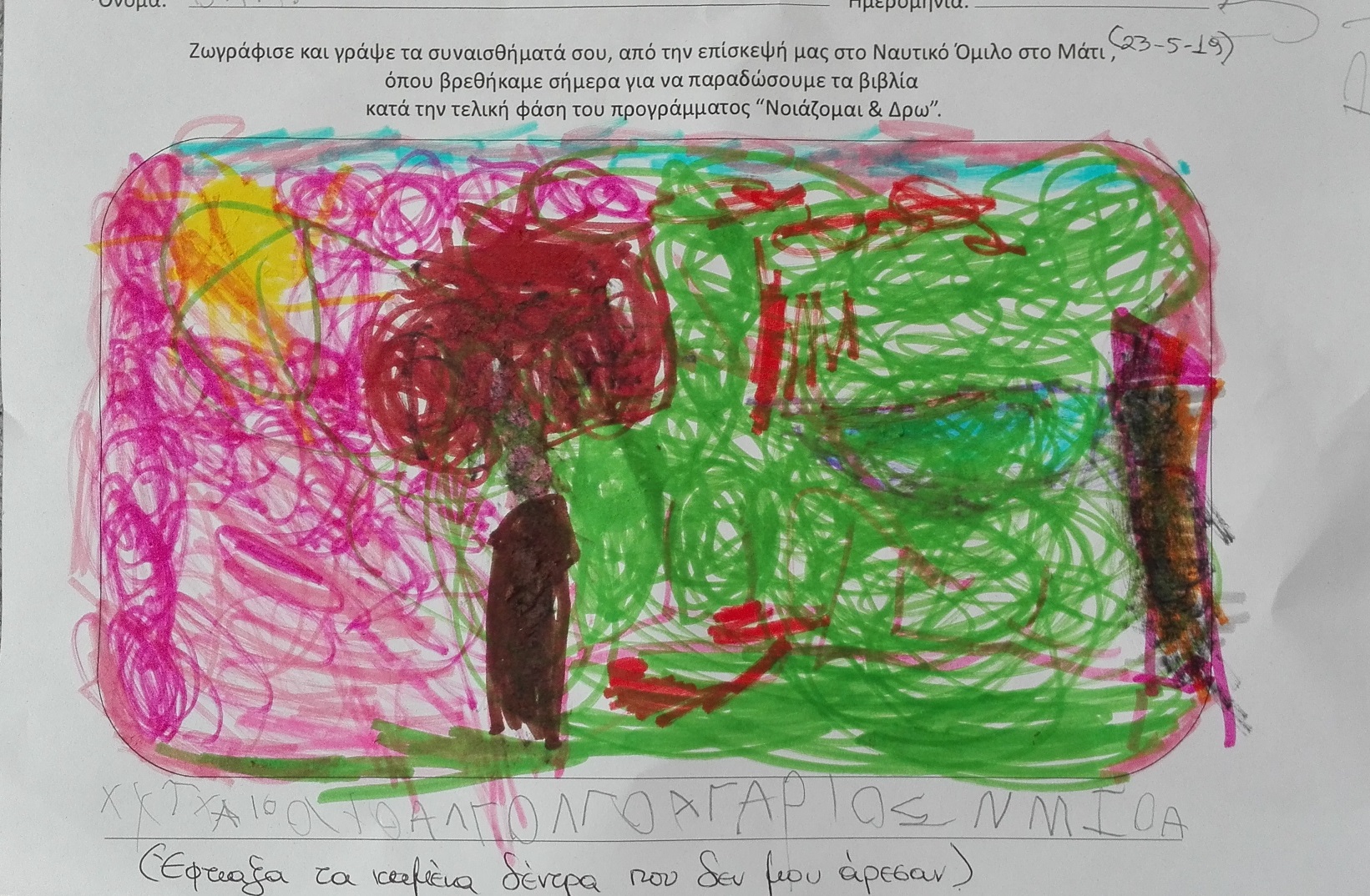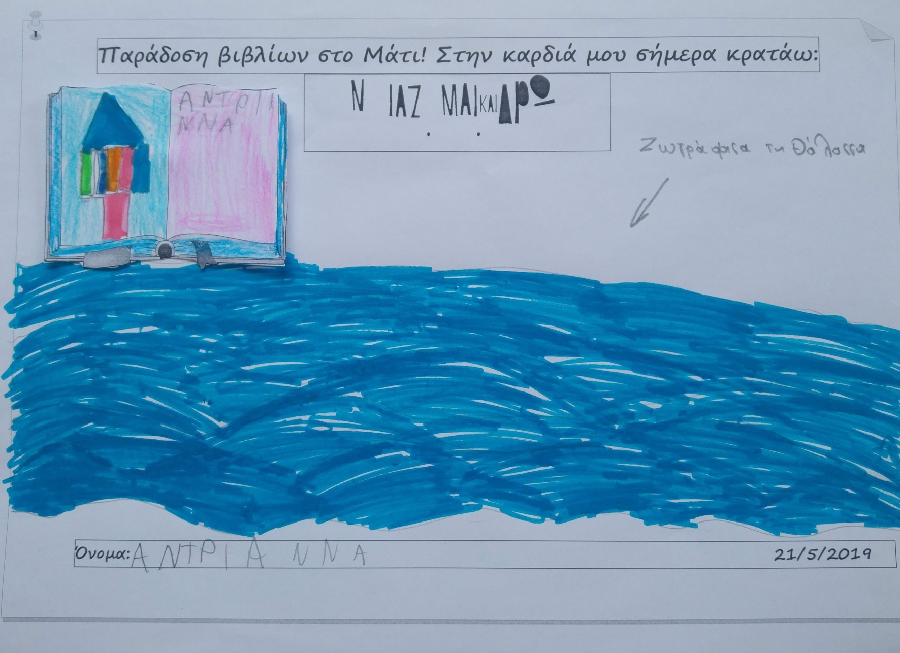 Κι ύστερα παίξαμε πλάι στο κύμα, εκεί που το νερό με τη δύναμή του σταμάτησε τη φωτιά, έσωσε ανθρώπους και ζώα...έδωσε παρηγοριά, ανάσα και πνοή ζωής, μια ελπίδα για όλους.