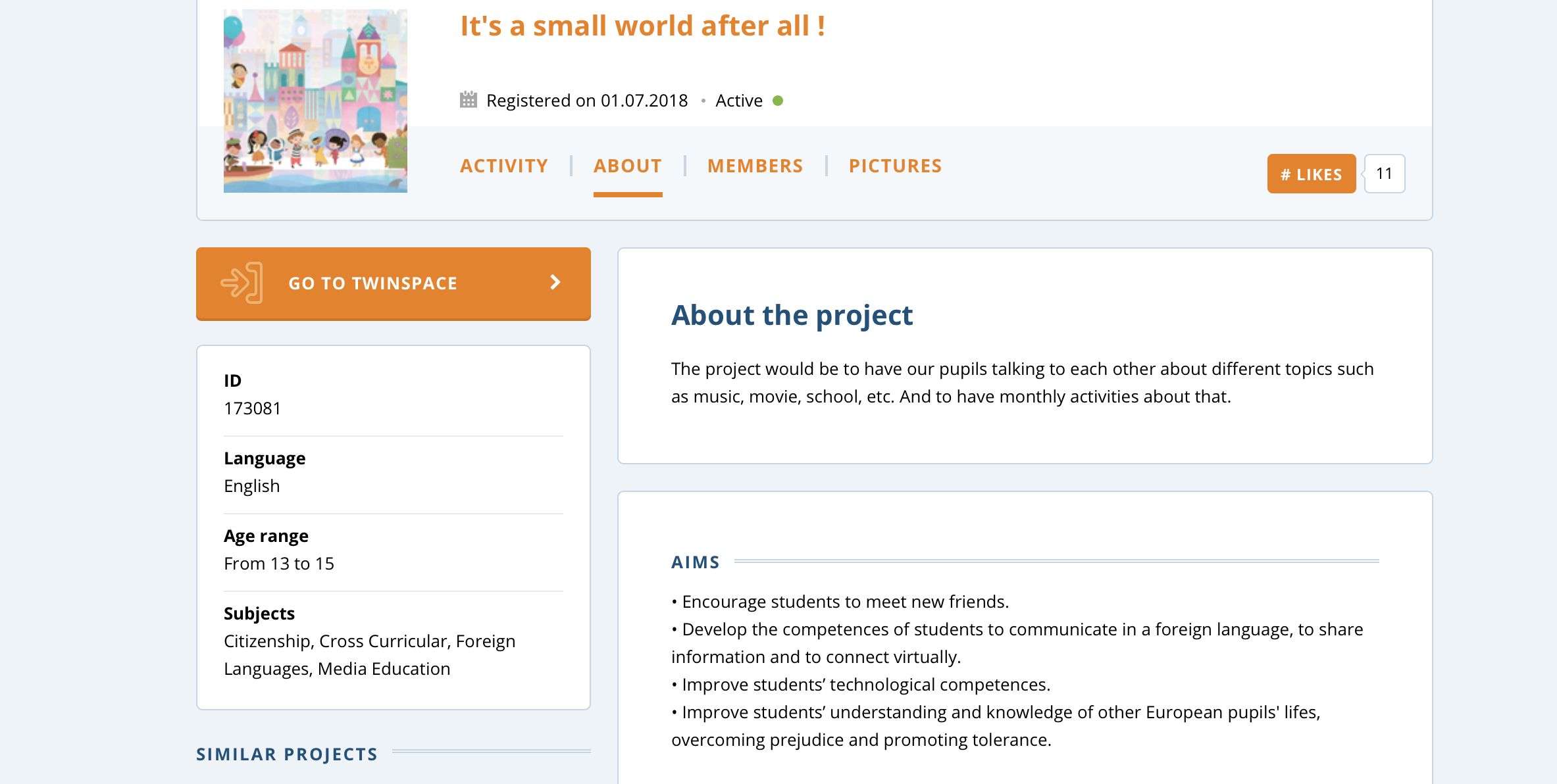 Ήταν μια συνεργασία eTwinning  με σχολεία της Γαλλίας, της Ολλανδίας, της Αρμενίας, της Γερωγία, της Τουρκίας, της Γερμανίας και της Ρουμανίας στο πλαίσιο της οποίας οι μαθητές και οι μαθήτριες αντάλλαξαν εμπειρίες από την καθημερινότητα και τη ζωή τους με σκοπό να εντοπίσουν διαφροές και ομοιότητες και απώτερο στόχο να κατανοήσουν, να αποδεχτούν το διαφορετικό και να συνομιλήσουν μαζί του.