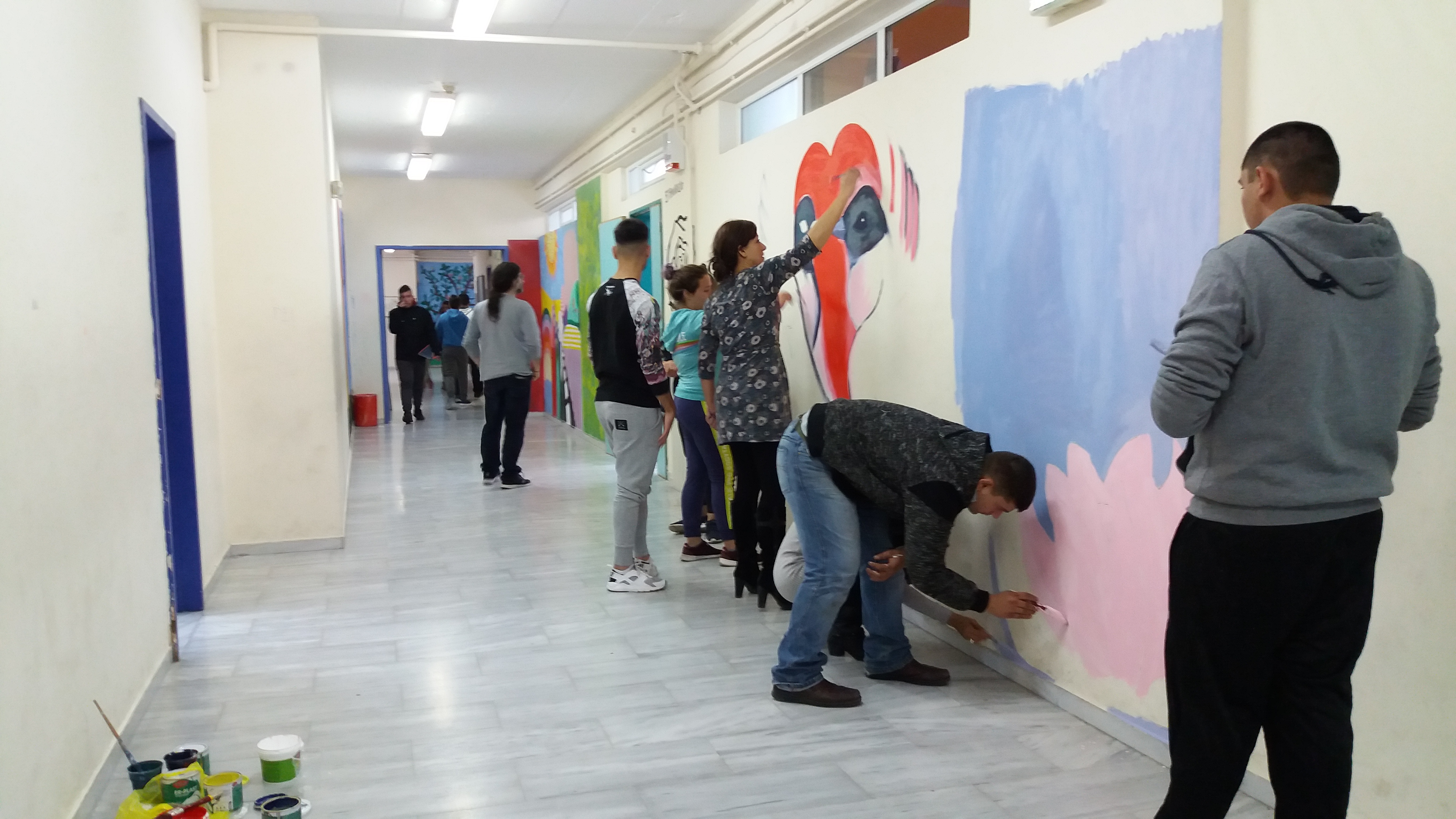 ζωγραφίζοντας οι μαθητές του 5ου Γυμνασίου όλους τους χώρους του