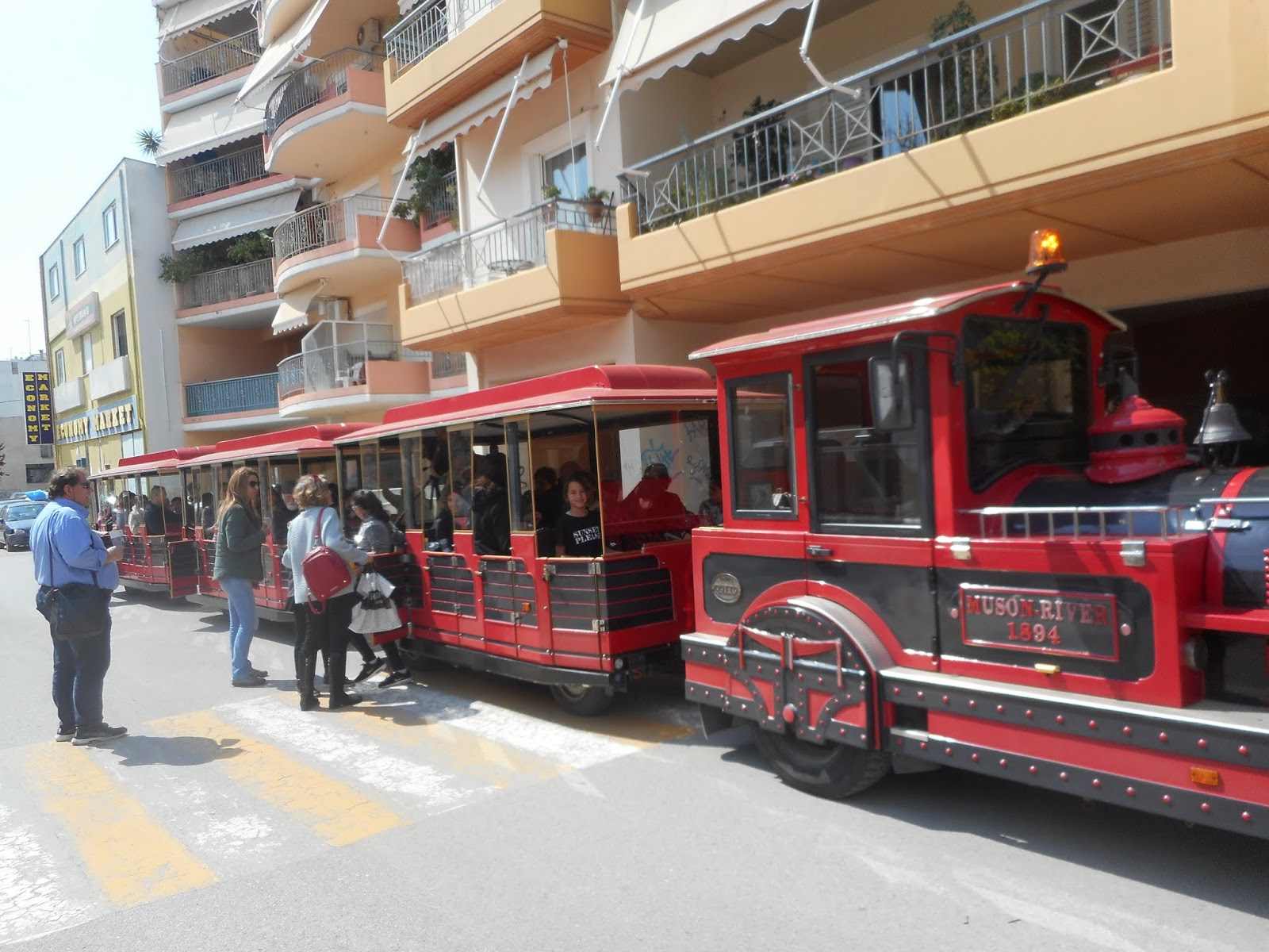 Αφού λοιπόν περάσαμε τη λεωφόρο Χαϊνά, κατεβήκαμε στην παραλιακή λεωφόρο της πόλης ενώ ταυτόχρονα ακούγαμε από το μεγάφωνο στο τρενάκι πολύ σημαντικά ιστορικά στοιχεία για την πόλη μας. Περάσαμε την παλιά γέφυρα, φτάσαμε ως τις Ροδιές και στην επιστροφή μας ανεβήκαμε στο Κάστρο του Καράμπαμπα, όπου κάναμε στάση, αποβιβαστήκαμε και είδαμε και τον τάφο του Γιάννη Σκαρίμπα. Για λίγα λεπτά απολαύσαμε την υπέροχη λιακάδα ατενίζοντας από ψηλά την όμορφη πόλη μας. Στην επιστροφή περάσαμε από το τζαμί του Εμίρ Ζαδέ, το Λαογραφικό Μουσείο, το ναό της Αγ. Παρασκευής, το λιμάνι και φτάσαμε πάλι στο σχολείο μας.