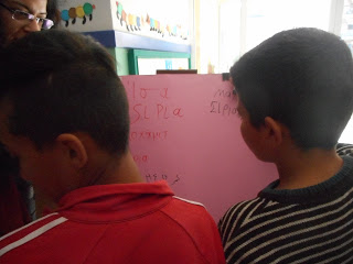 Μόλις ήρθαν, αρχικά γνωριστήκαμε και εντάξαμε τα παιδιά αυτά στις μικρές ομάδες της τάξης μας. Στη συνέχεια παίξαμε διάφορα ευχάριστα παιχνίδια και τα ξεναγήσαμε στους χώρους του σχολείου. Απολαύσαμε όλοι μαζί το υγιεινό δεκατιανό μας και ήπιαμε χυμούς.